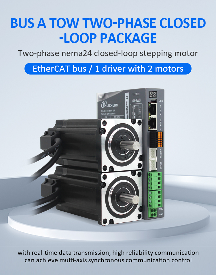EtherCAT 2 fázisú Nema23 2 tengelyes DC zárt hurkú léptetőmotor meghajtókészlet