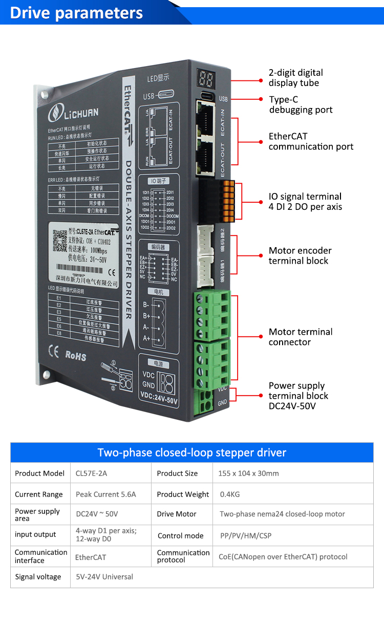 EtherCAT 2 fázisú Nema24 4 tengelyes DC zárt hurkú léptetőmotor meghajtókészletÚj termékek EtherCAT 2Phase Nema24 2-Axis DC zárt hurkú léptetőmotor meghajtókészlet Kínában készült CE/ROHS-sel a LICHUAN®-tól. Üzemünk egy híres EtherCAT 2Phase Nema24 2-Axis DC zárt hurkú léptetőmotor meghajtókészlet gyártója és beszállítója Kínában. Termékünk kiváló minőségű / tartós / stabil működés és olcsó ár. És személyre szabott szolgáltatásokat nyújtunk.