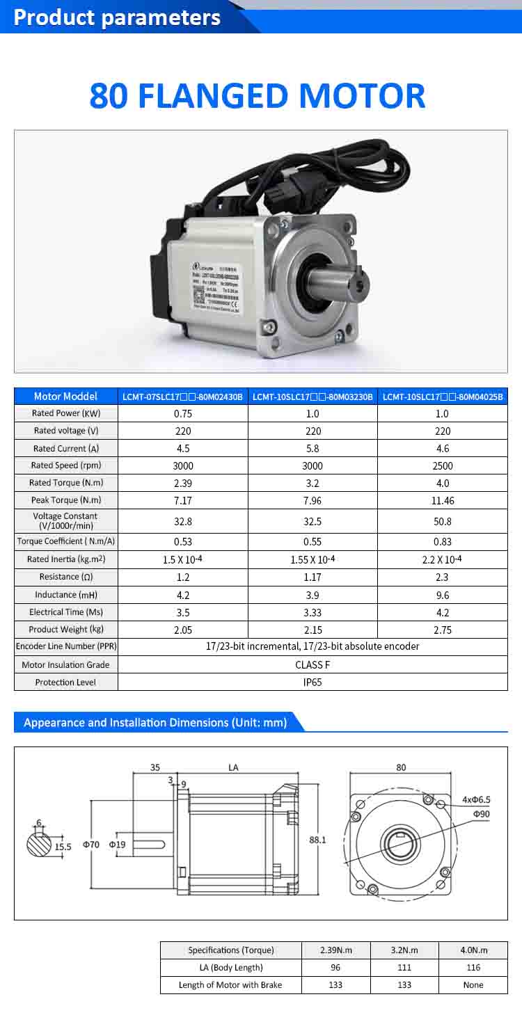 | Motor modell | LCMT-07SLC17-80M02430B | LCMT-10SLC17-80M03230B | LCMT-10SLC17-80M04025B |
