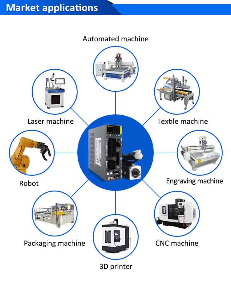 Ez a készlet szállítpontos pozíció visszajelzés, ABZ inkrementális jeladó jelei, STO funkcionális biztonság, ésstabil AC szervo vezetési teljesítmény, amely kiváló sebességet, nyomatékot és pozicionálási pontosságot biztosít.