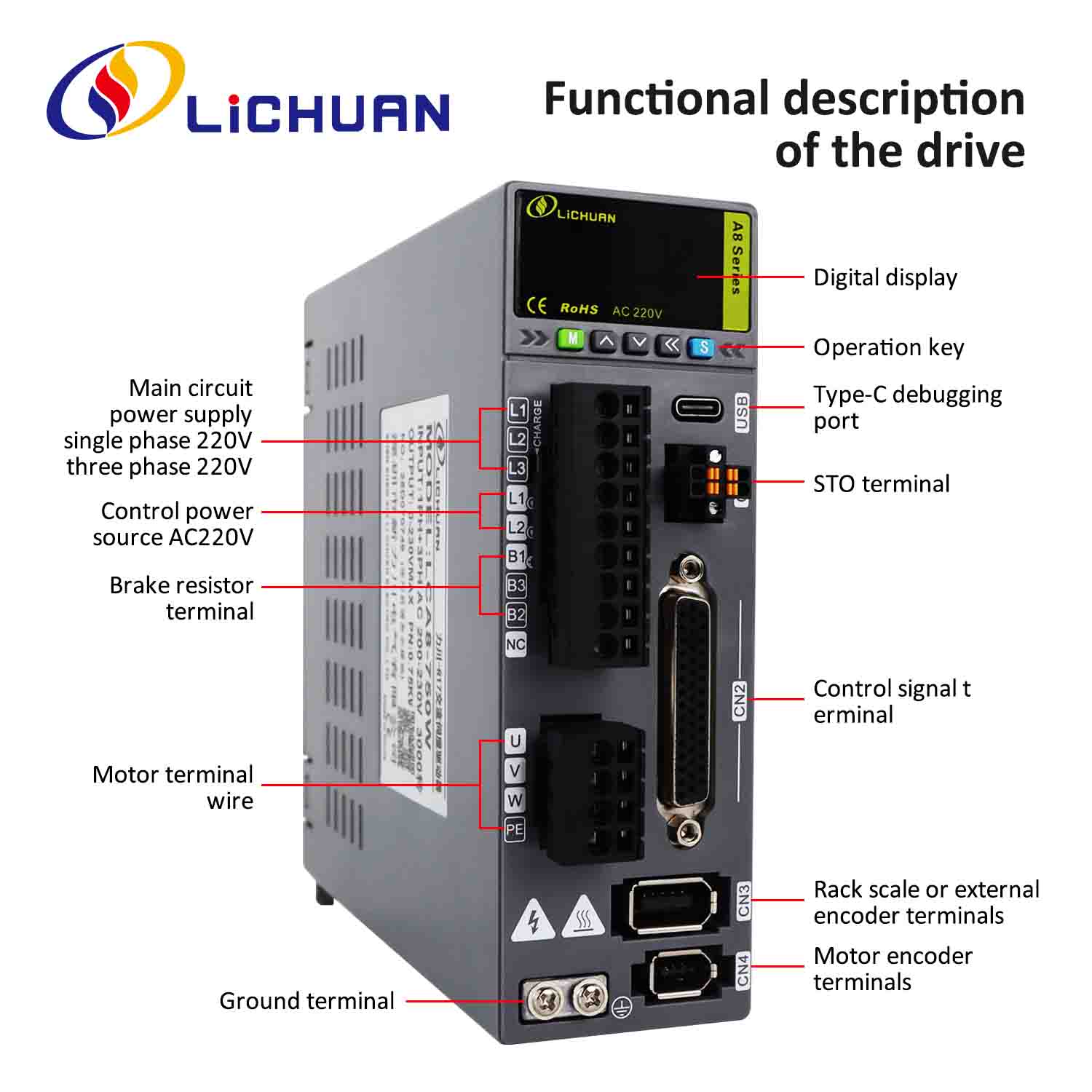 Lichuan A8 nagy pontosságú STO ABZ váltóáramú szervomotor meghajtókészlet – Teljes termékáttekintés
