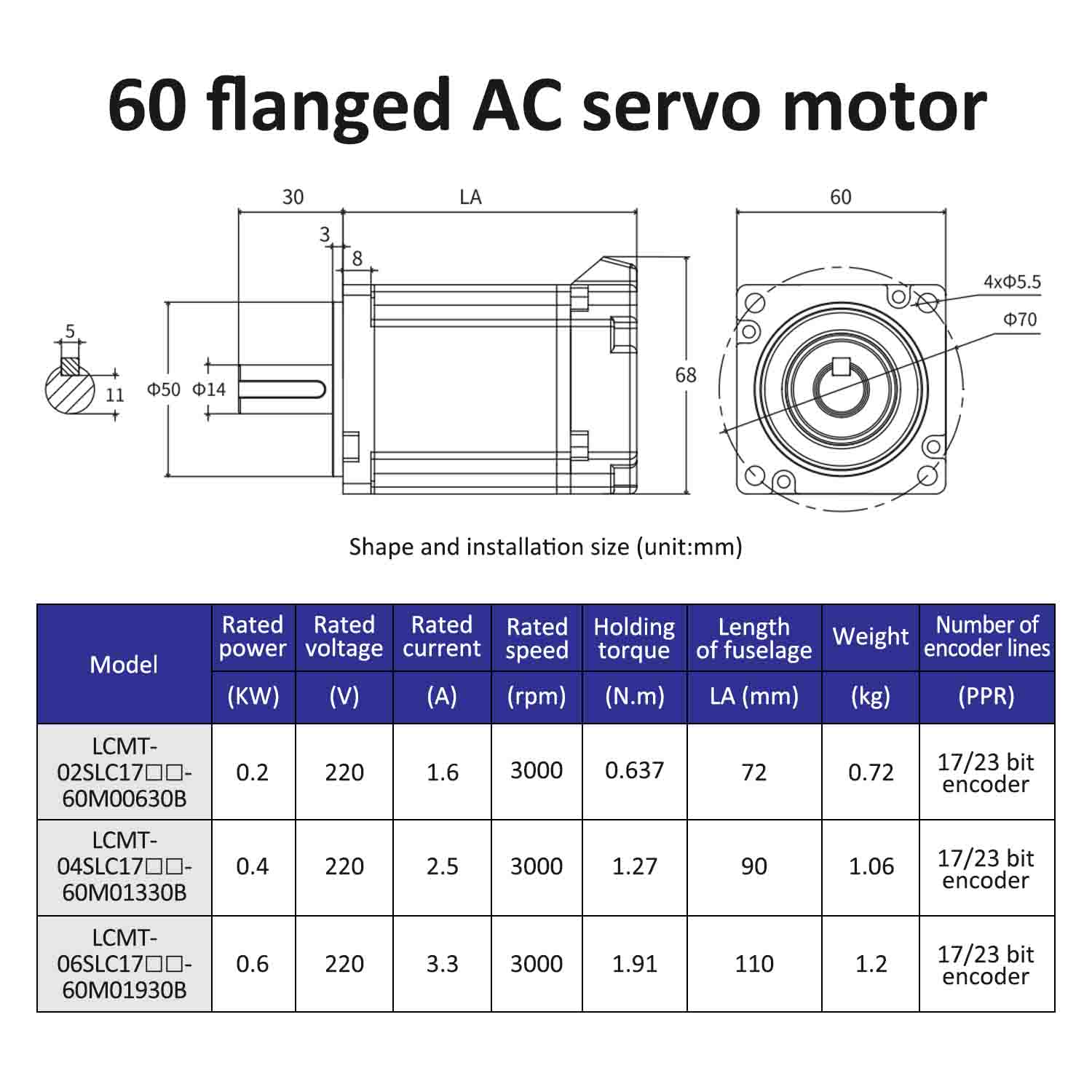 | Motor modell | LCMT-02SLC17-60M00630B | LCMT-04SLC17-60M01330B | LCMT-06SLC17-60M01930B |