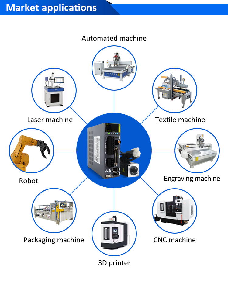 Ez a sorozat egy nagy teljesítményű AC szervohajtás integrált STO (Safe Torque Off) biztonsági nyomatékleállító funkcióval, amely megfelel az IEC 61800-5-2 biztonsági szabványnak, és vészhelyzet esetén biztonságos leállítást tesz lehetővé. A rendszer támogatja a teljes zárt hurkú vezérlési módot, és ± egy impulzus pozicionálási pontosságot ér el a nagy felbontású kódoló visszacsatolás révén, amely kompatibilis a forgó motorokkal és a lineáris motorok alkalmazási forgatókönyveivel. C típusú hibakereső interfésszel van felszerelve, támogatja a valós idejű paraméterkonfigurálást, és beépített RS485 kommunikációs interfésszel rendelkezik (Modbus RTU protokoll), az átviteli sebesség pedig 9,6 kb/s-115,2 kbps között állítható. Elfogadja a mágneses mező orientáció vezérlő (FOC) algoritmusát, amely alkalmas nagy dinamikus válaszreakciókhoz, például precíziós CNC- és félvezető berendezésekhez.