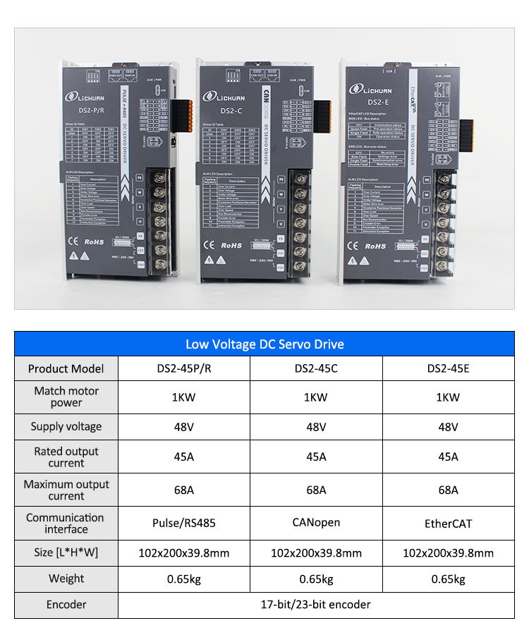 Impulzus/RS485/CANopen/EtherCAT 40 FRANGED 100W alacsony feszültségű DC szervomotor meghajtókészlet